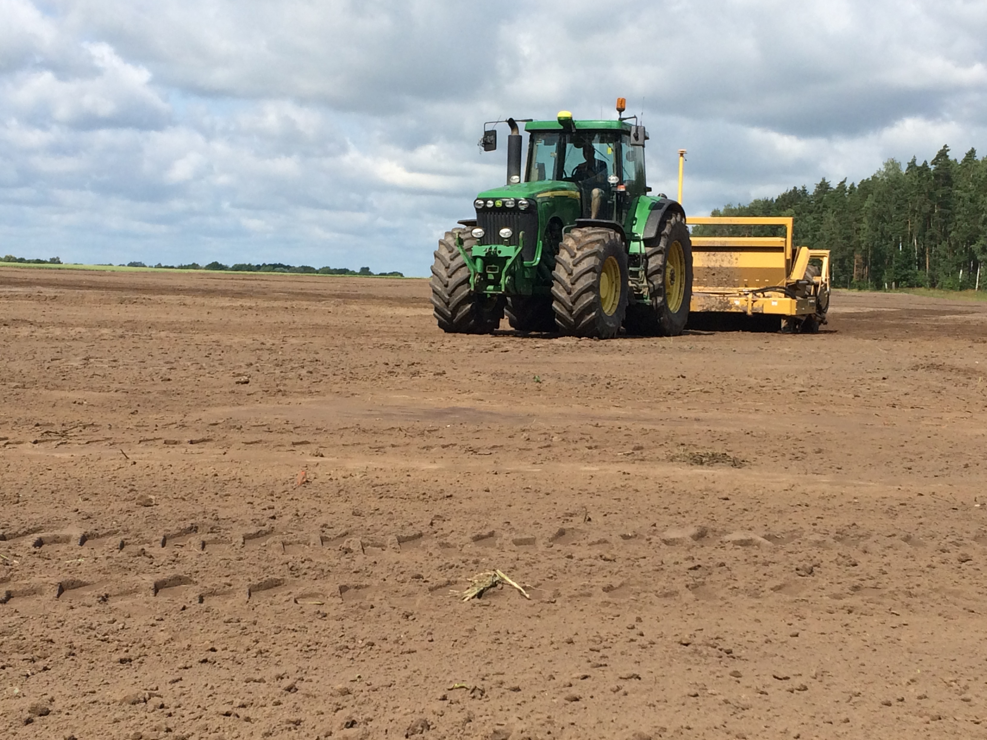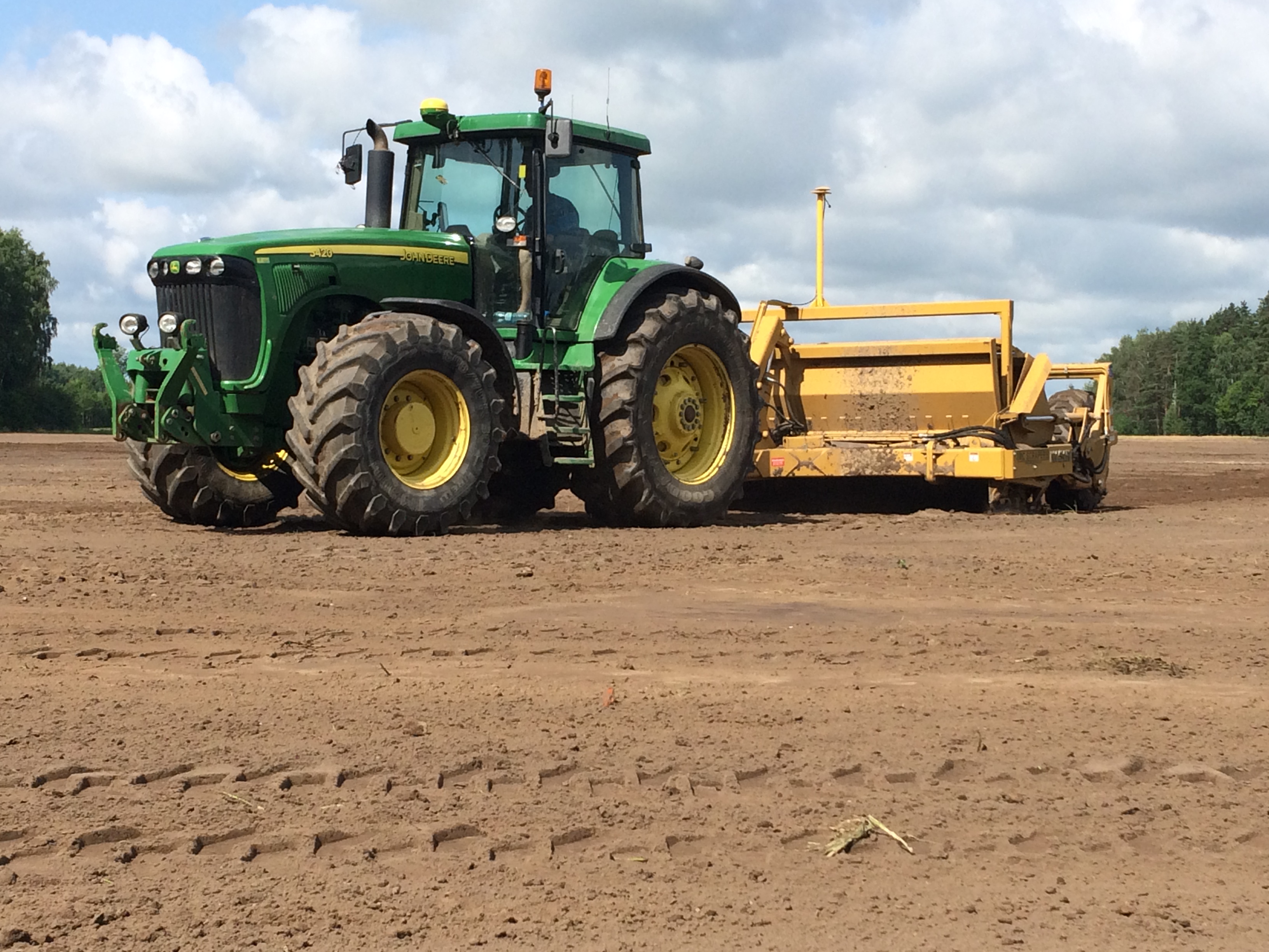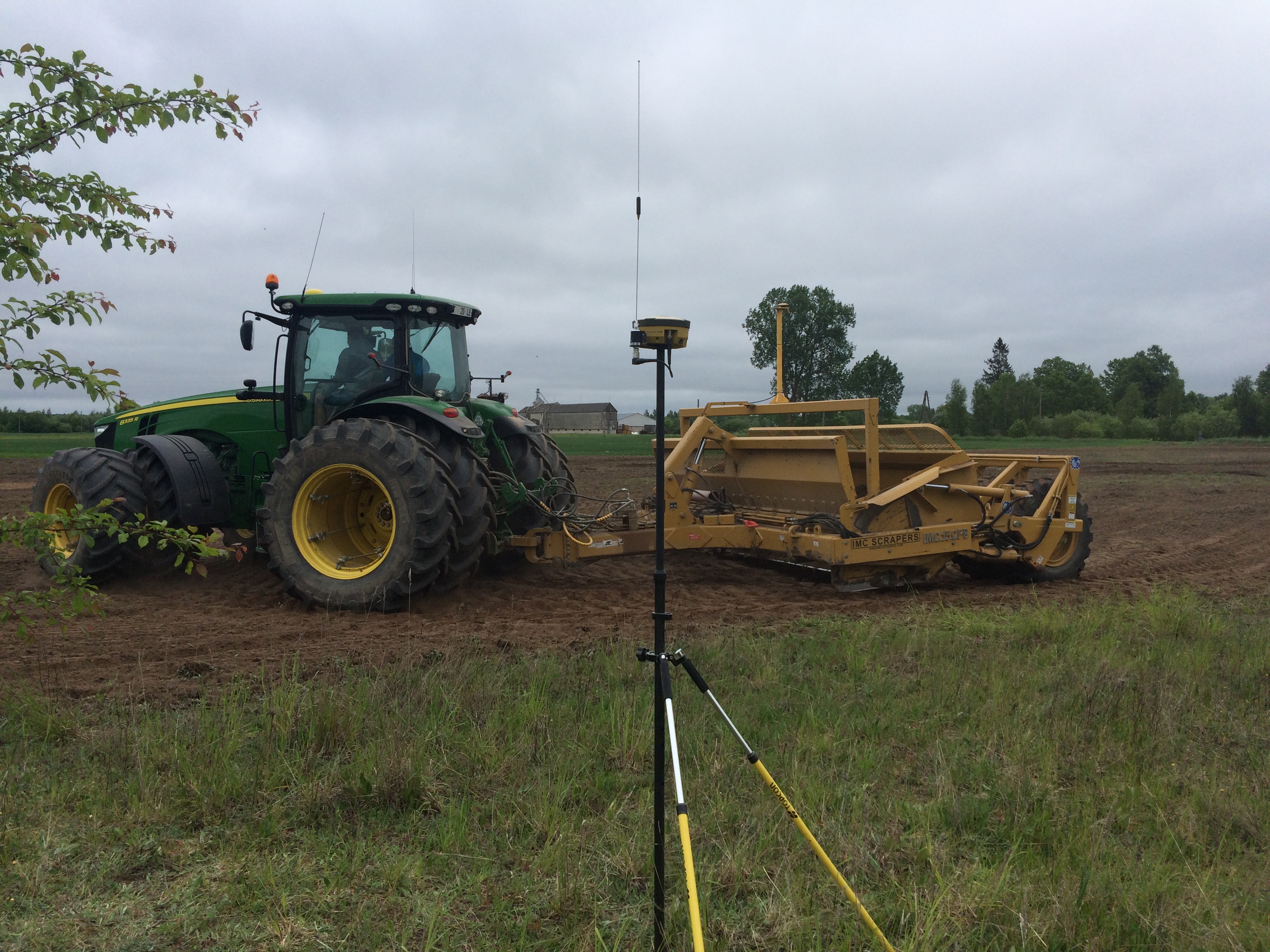 Veicam augsnes virskārtas izlīdzināšanu ar IMC Scraper skreiperi un Topcon GPS antenām.