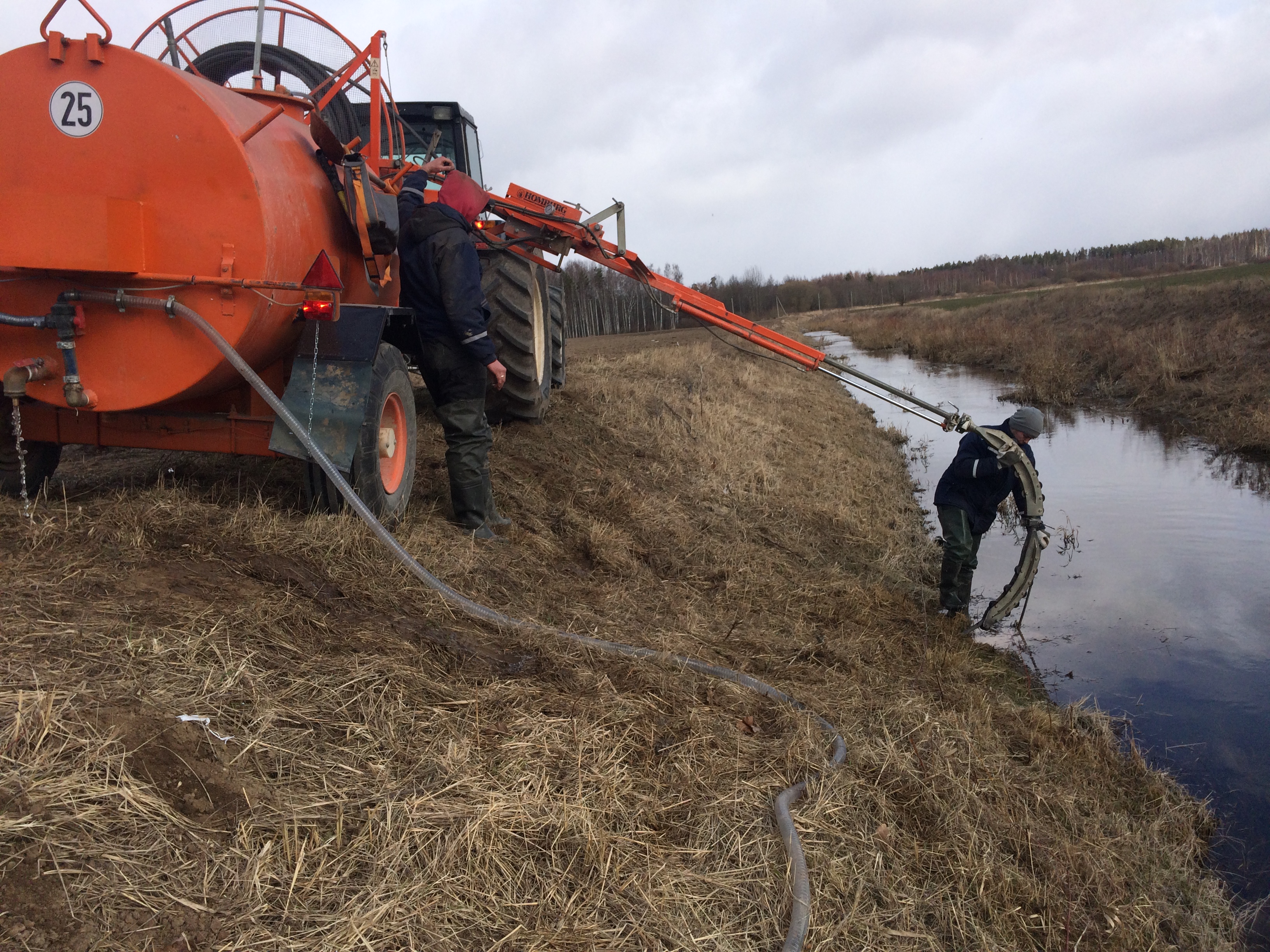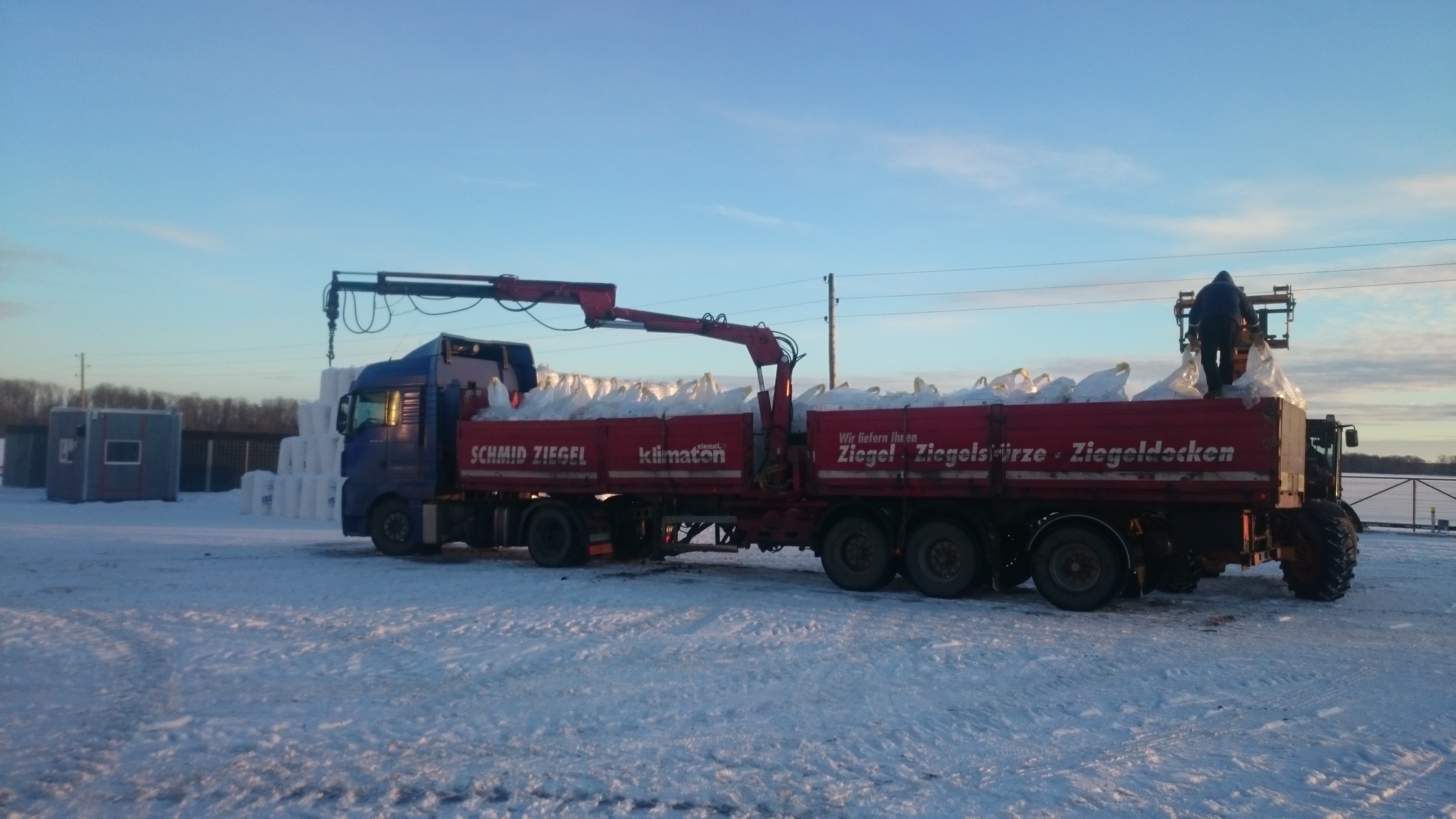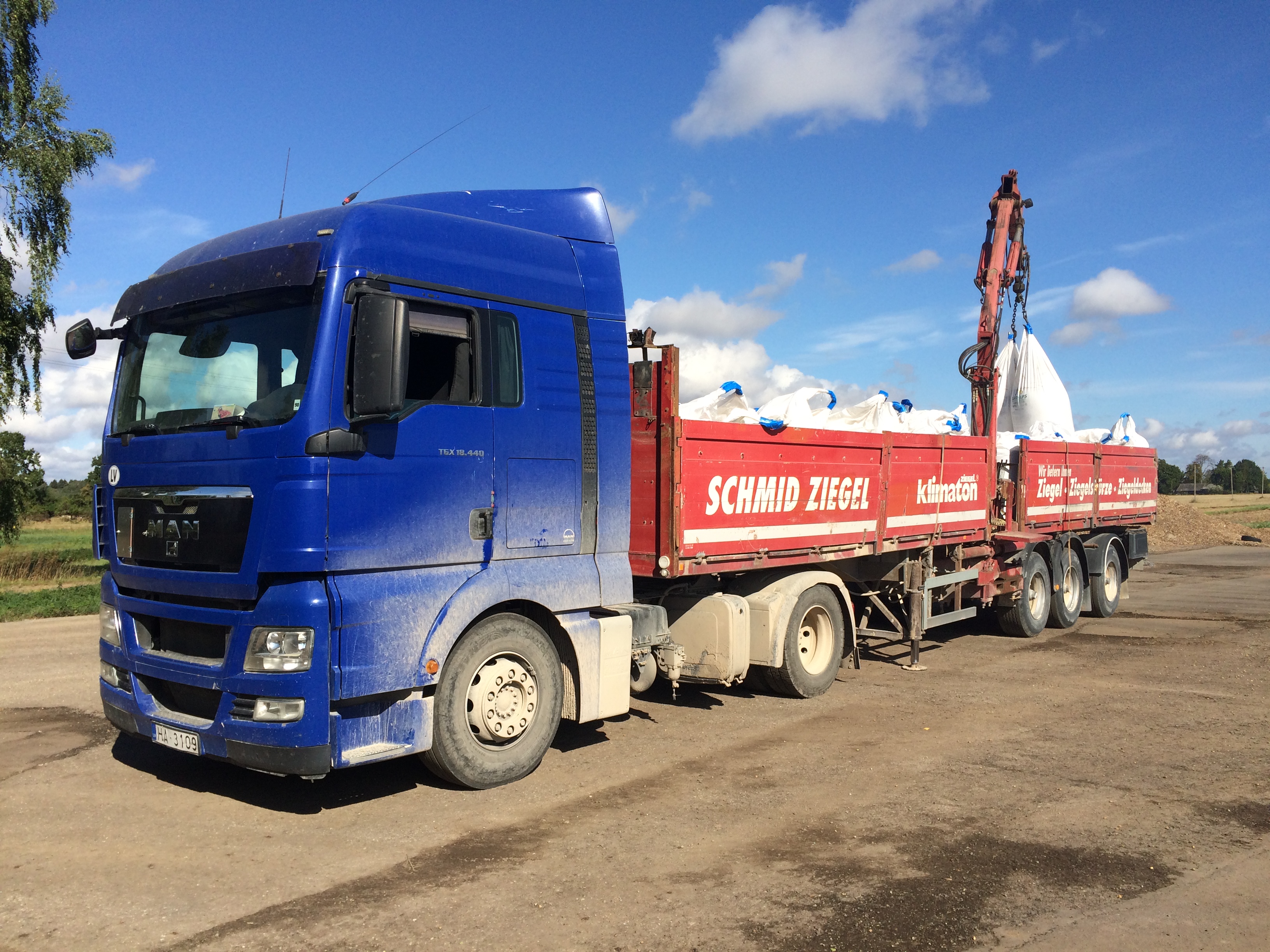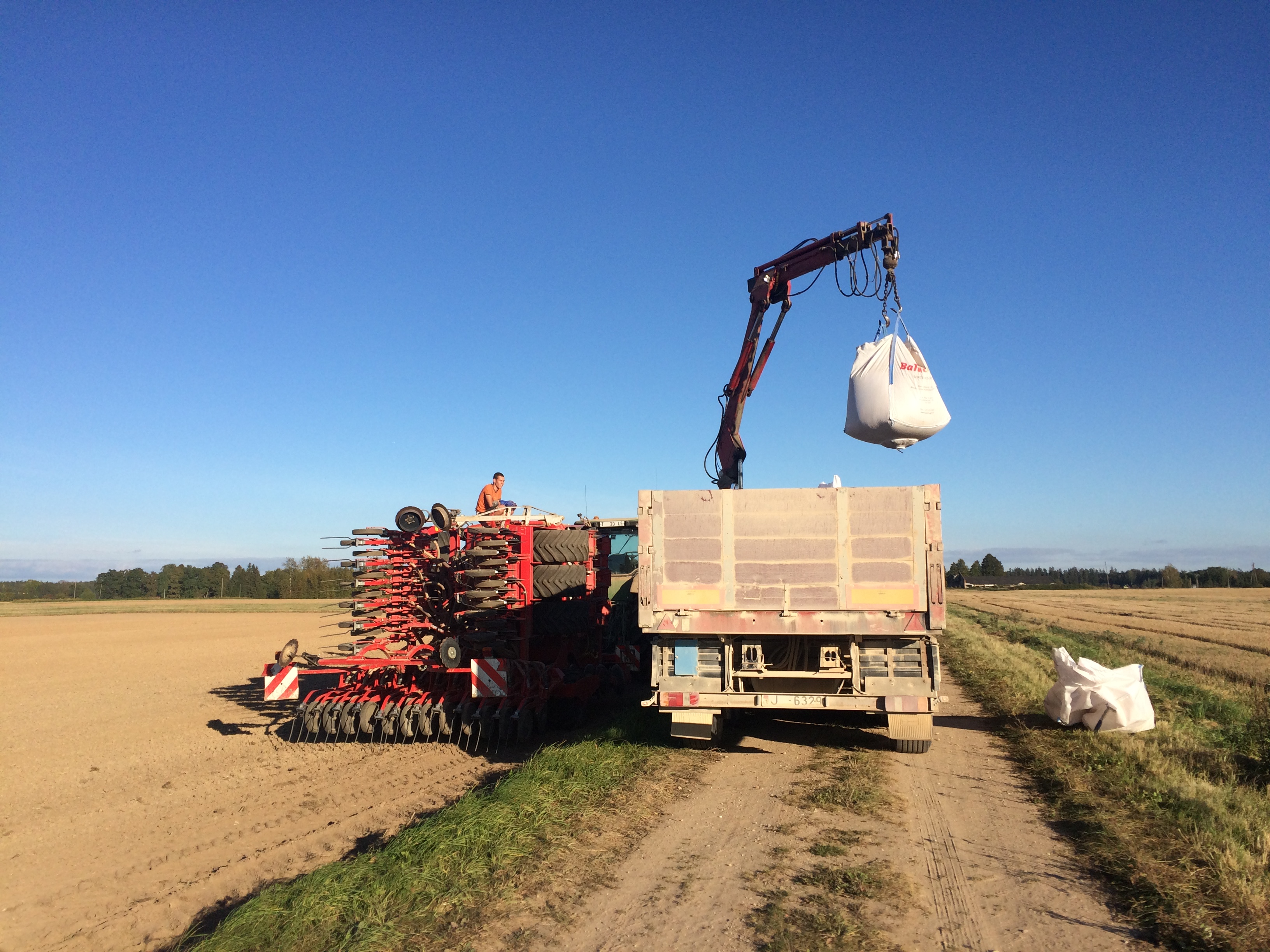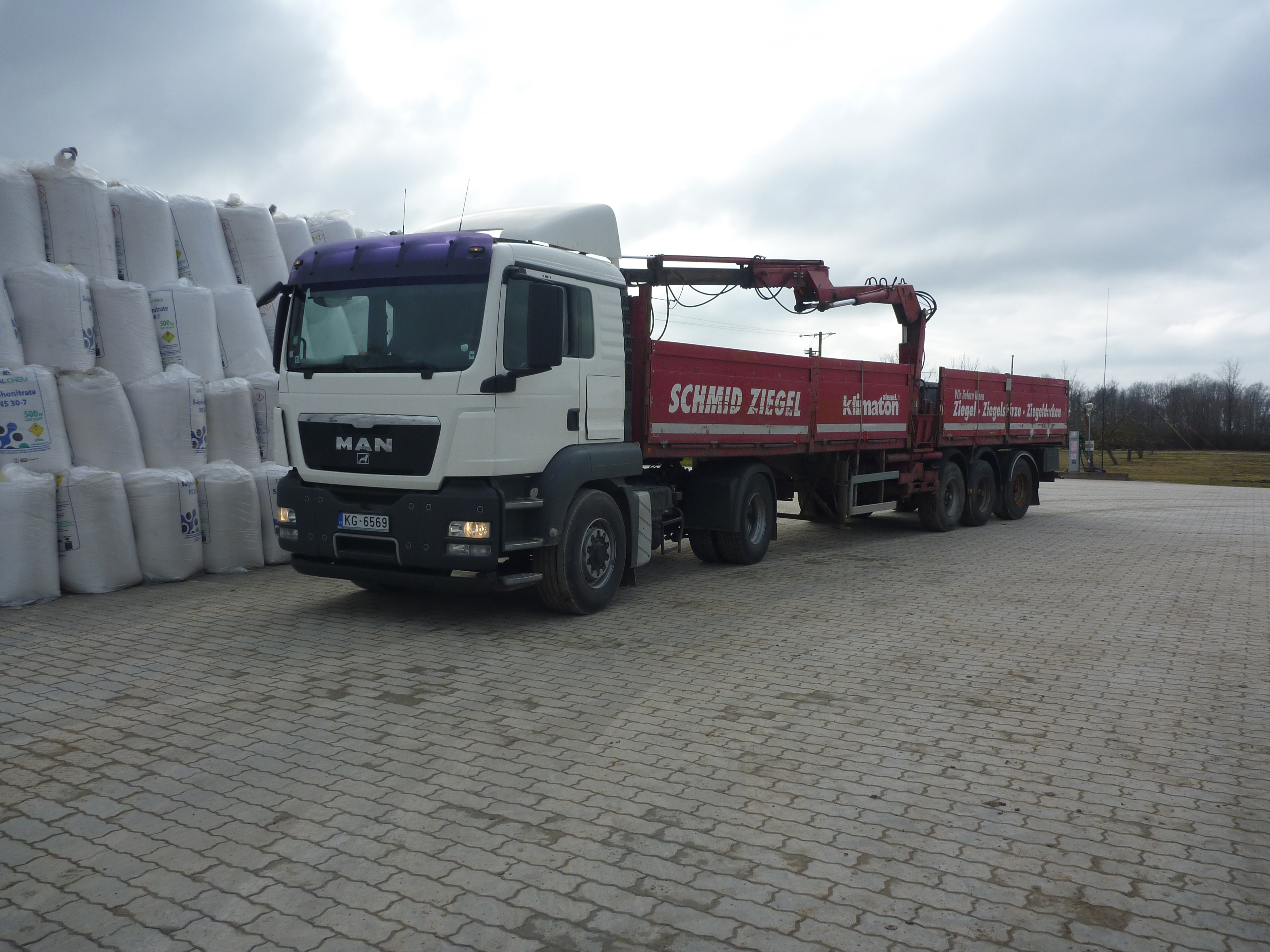 - Puspiekabe ar manipulatoru minerālmēslu, sēklas maisu un citu kravu pārvadāšanai, piekabes garums 12 m, manipulatora garums 7m.